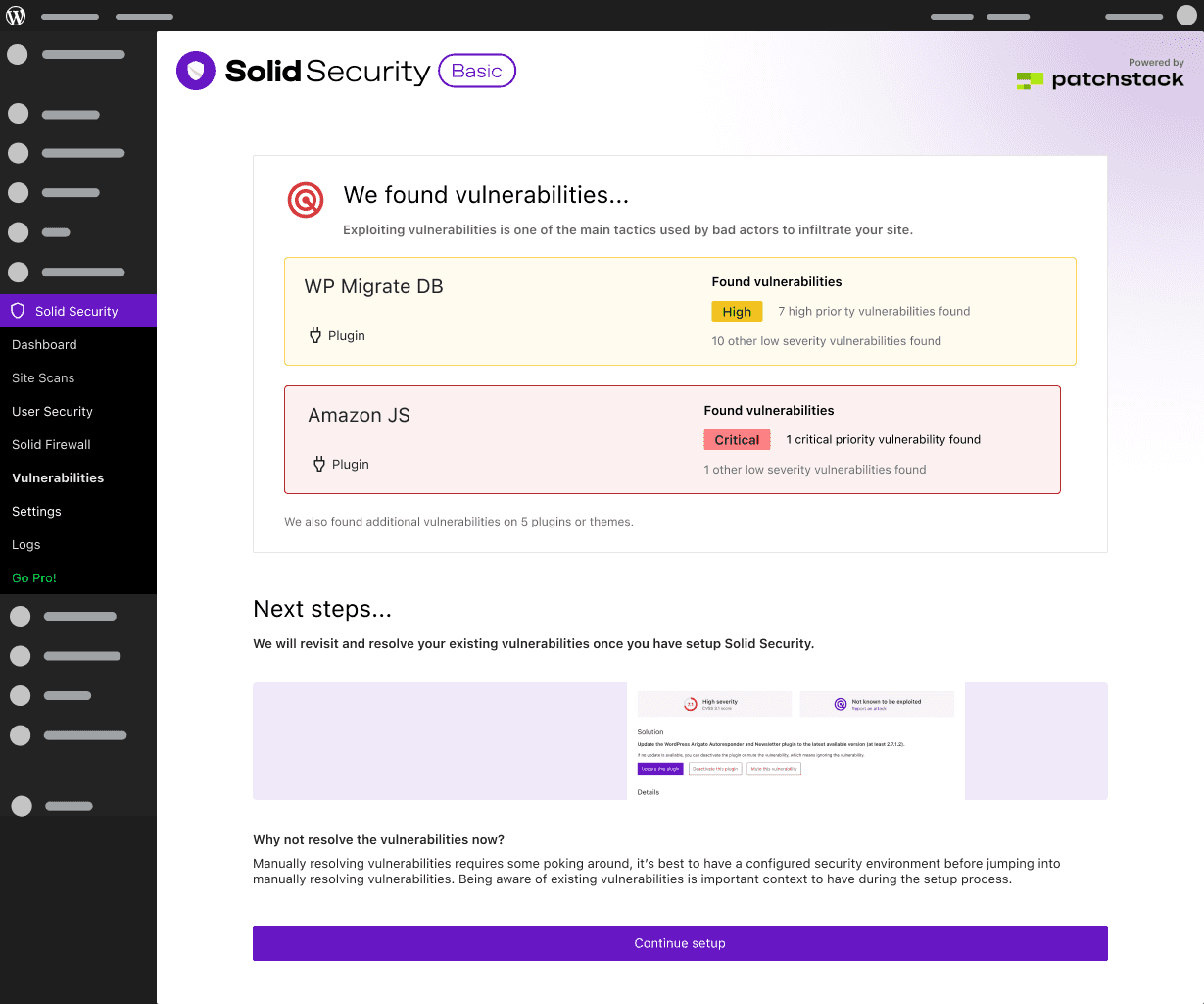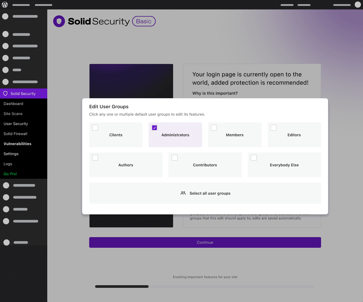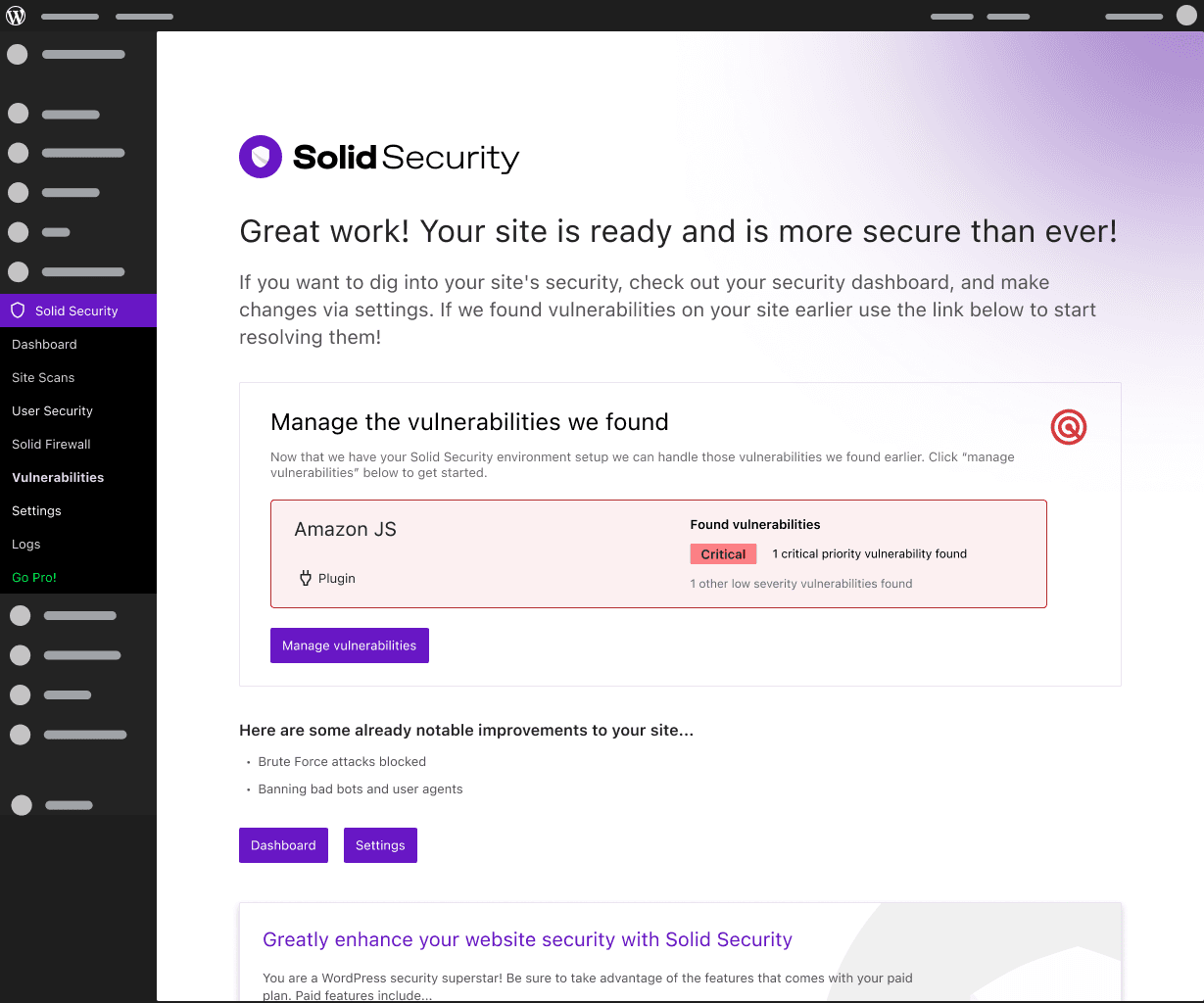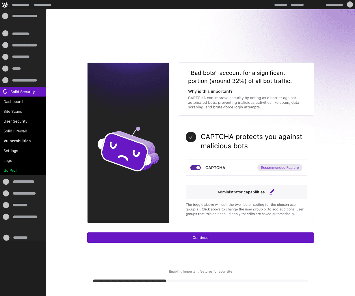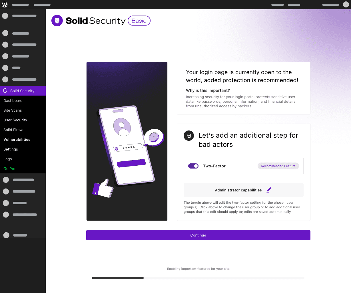 Security plugins are notoriously complex. Following the iThemes rebrand to Solid Security, research showed users felt overwhelmed by jargon and "setup fatigue." I was tasked with redesigning the onboarding to provide immediate value while simplifying high-stakes security concepts.